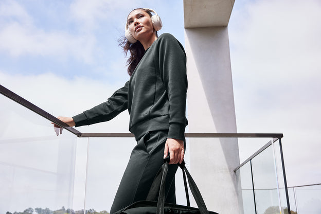 Transcend the line between work and leisure. With ultra soft double-knit and stretch, this sueded pullover is as cozy and comfortable as it is polished.